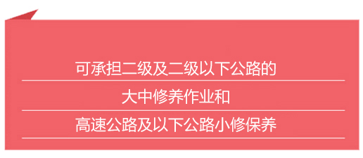 可承擔(dān)二級(jí)及二級(jí)以下公路的大中修養(yǎng)作業(yè)和高速公路及以下公路小修保養(yǎng)。